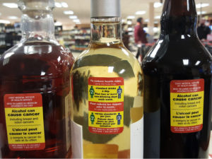 Yukon tested affixing cancer warning labels to containers of alcohol as part of an eight-month test. The test was halted after about a month.