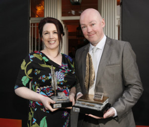Hennessy New Irish Writer 2011 Niamh Boyce with John Boyne, the latest inductee into the Hall of Fame at the Hennessey Literary Awards.