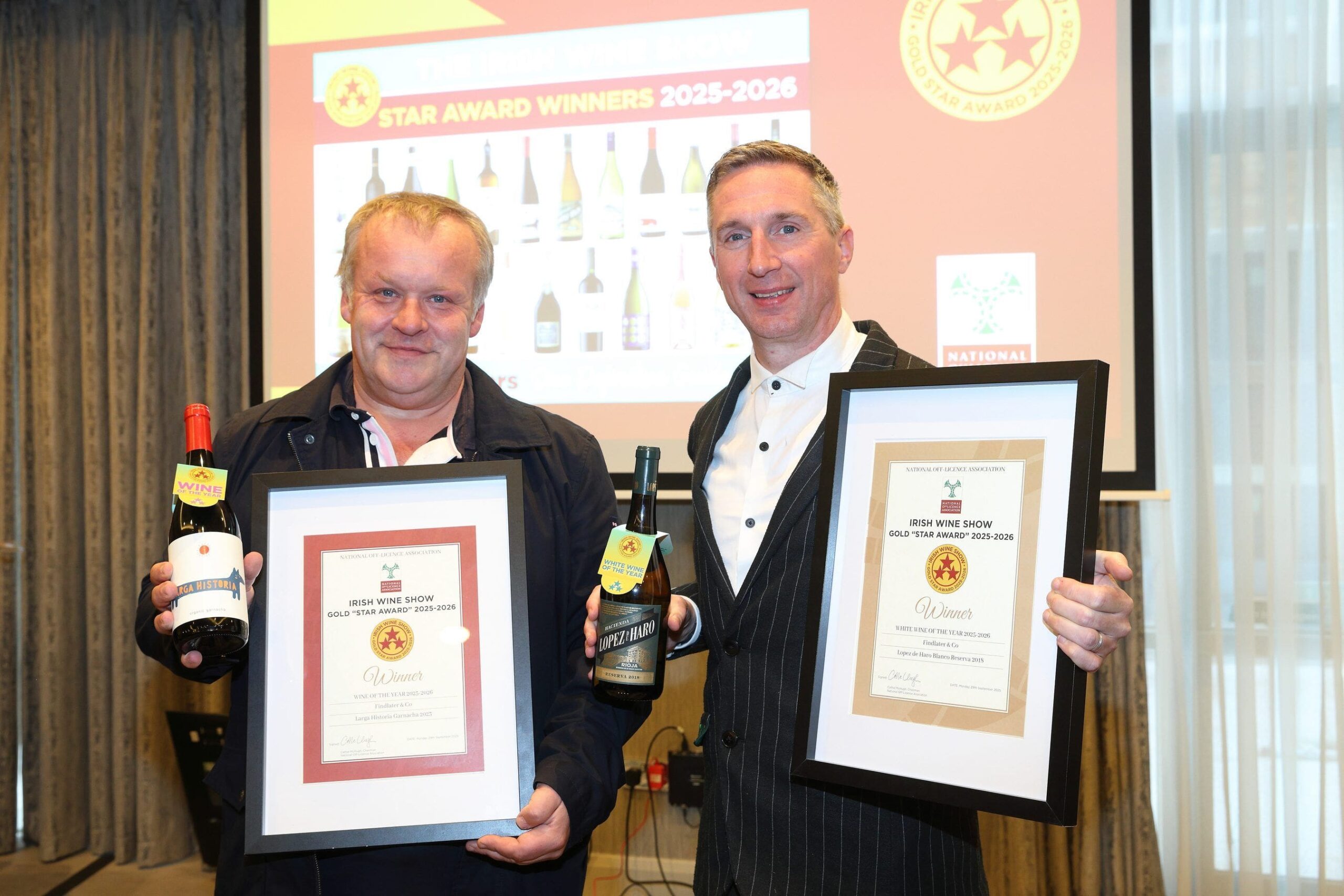 Andrew Fullerton of Citizen Wines and Richard Moriarty of Findlater & Co at the NoffLA Irish Wine Show Star Awards